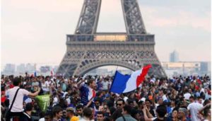 பிரான்ஸ் தலைநகர் பாரிசில் அமைந்துள்ள ஈபிள் டவரில் திரளான ரசிகர்கள் திர்ண்டனர். பிரான்ஸ் அணி வெற்றி பெற்றதை கண்ட ரசிகர்கள் உற்சாக மிகுதியில் ஆரவாரம் செய்தனர்.