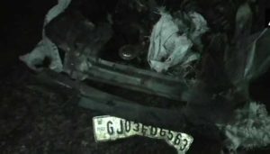 குஜராத் மாநிலம், மோர்பி மாவட்டத்தில் அமைந்துள்ள ராஜ்கோட்-மோர்பி தேசிய நெடுஞ்சாலையில் தங்காரா எனும் பகுதியில் எதிரே வந்த லாரியின் மீது சொகுசு கார் மோதி விபத்தில் சிக்கியது. இதனால் பற்றிய தீ வேகமாக கார் முழுதும் பரவியது.