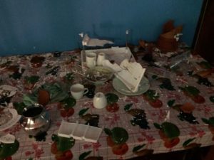 அதனைத் தொடர்ந்து வீட்டிற்குள் நுழைந்த குழுவினர் வீட்டின் கதவு ஐன்னல்கள் மற்றும் கதிரை மேசை, குளிர்சாதனப்பெட்டி என அங்கிருந்த அனைத்து பொருட்களையும் அடித்து நொருக்கியுள்ளனர்.