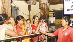 கைக்குழந்தைகளுடன் வரும் பக்தர்கள் பல மணிநேரம் வரிசையில் நின்று சாமி தரிசனம் செய்யும் போது சில குழந்தைகள் வயிற்றுப்பசி உள்ளிட்ட காரணங்களால் அழுவதுண்டு.