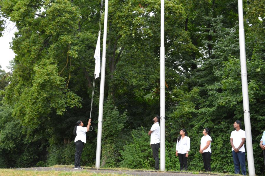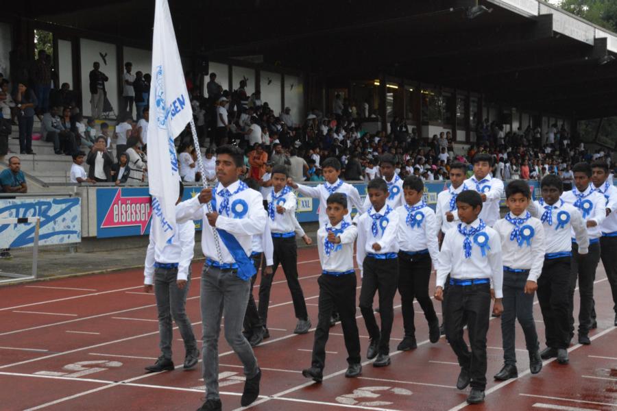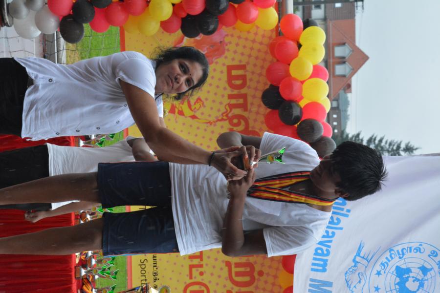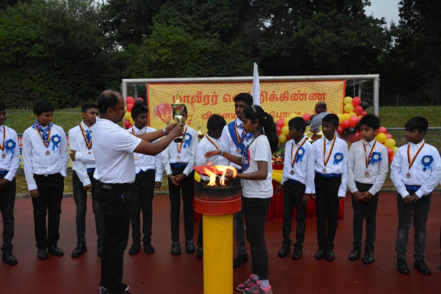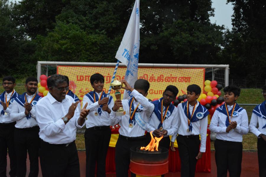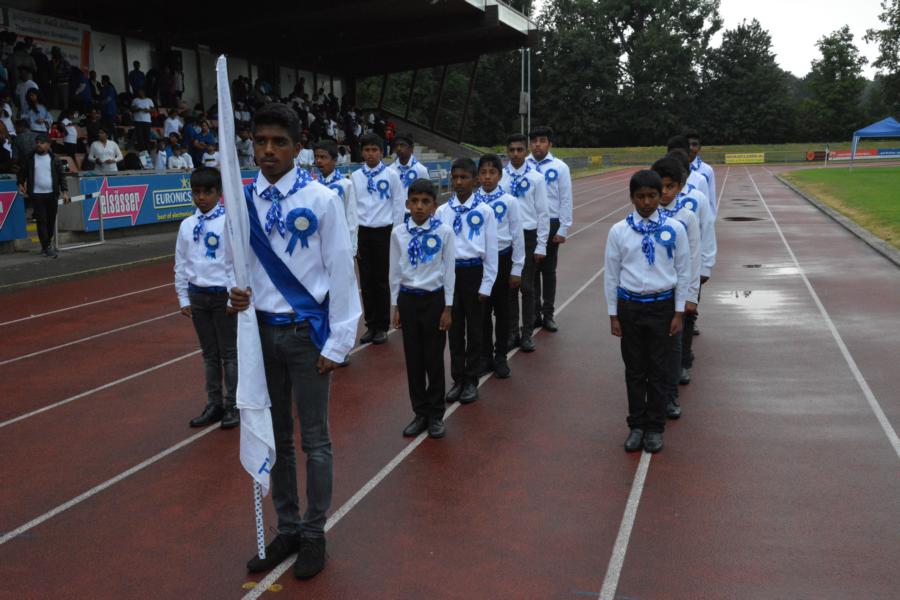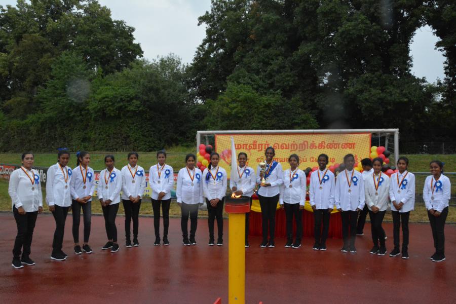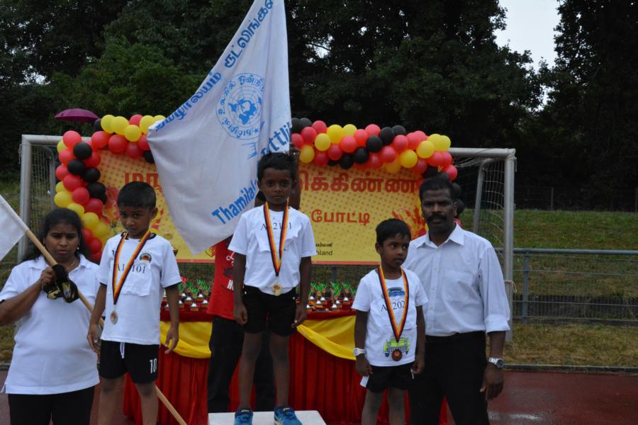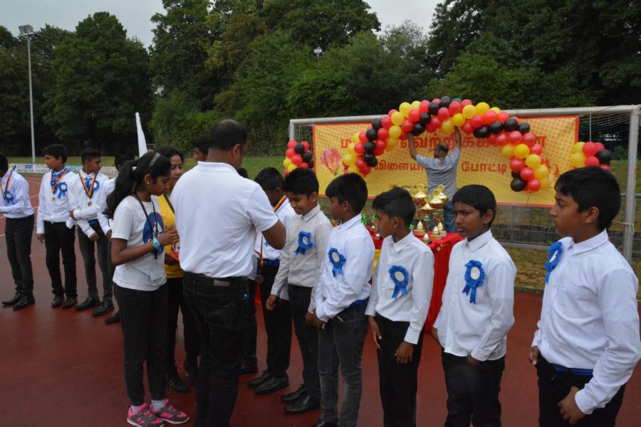 கொட்டும் மழையில் அணிநடையாக அணிவகுத்துவந்த தமிழாலய மாணவ மாணவிகள்; தமிழீழத் தேசியக் கொடிக்கு வணக்கம் செலுத்திச் சென்ற காட்சி பார்வையாளர்களை மெய்சிலிர்க்க வைத்தது. அதனைத் தொடர்ந்து போட்டிகளில் வெற்றிபெற்ற மாணவர்களுக்கு பதக்கங்களும் வெற்றிக் கேடயங்களும் வழங்கி மதிப்பளிக்கப்பட்டது.