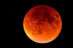 இலங்கை நேரப்படி இரவு 10.45 மணியளவில் இருந்து, மறுநாள் அதிகாலை வரை சந்திர கிரகணம் இடம்பெறும். அன்றைய தினம் நிலவை சுற்றி சிகப்பு நிற வளையம் தோன்றும் என்பதால் ´ரெட் மூன்´ என அழைக்கப்படுகிறது.