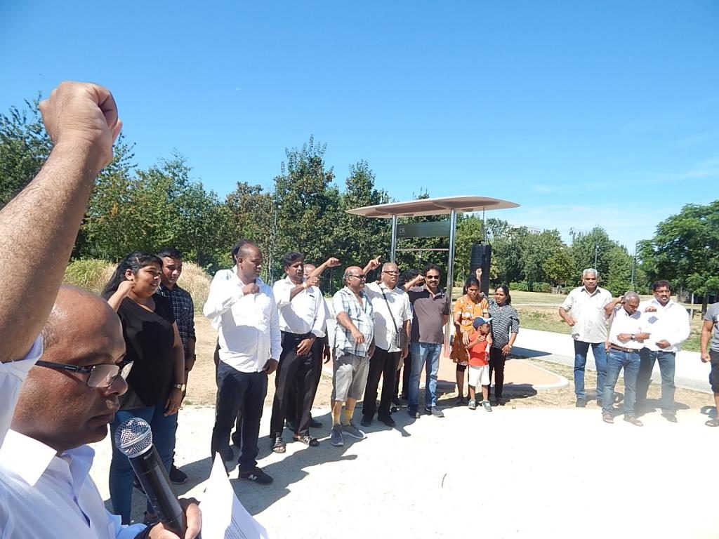 கிளிச்சி பிராங்கோ தமிழ்ச் சங்க செயலாளர் திரு சச்சி அவர்கள் உரையாற்றும் போது பல இடையூறுகளுக்கு மத்தியிலேயே இந்த நினைவு தூபி அமைக்கப்பட்டதாகவும் மே 18 மற்றும் ஆகஸ் 04 ஆகிய தினங்களில் இவ்விடத்தில் வணக்க நிகழ்வு நடைபெறும் எனத் தெரிவித்தார்.