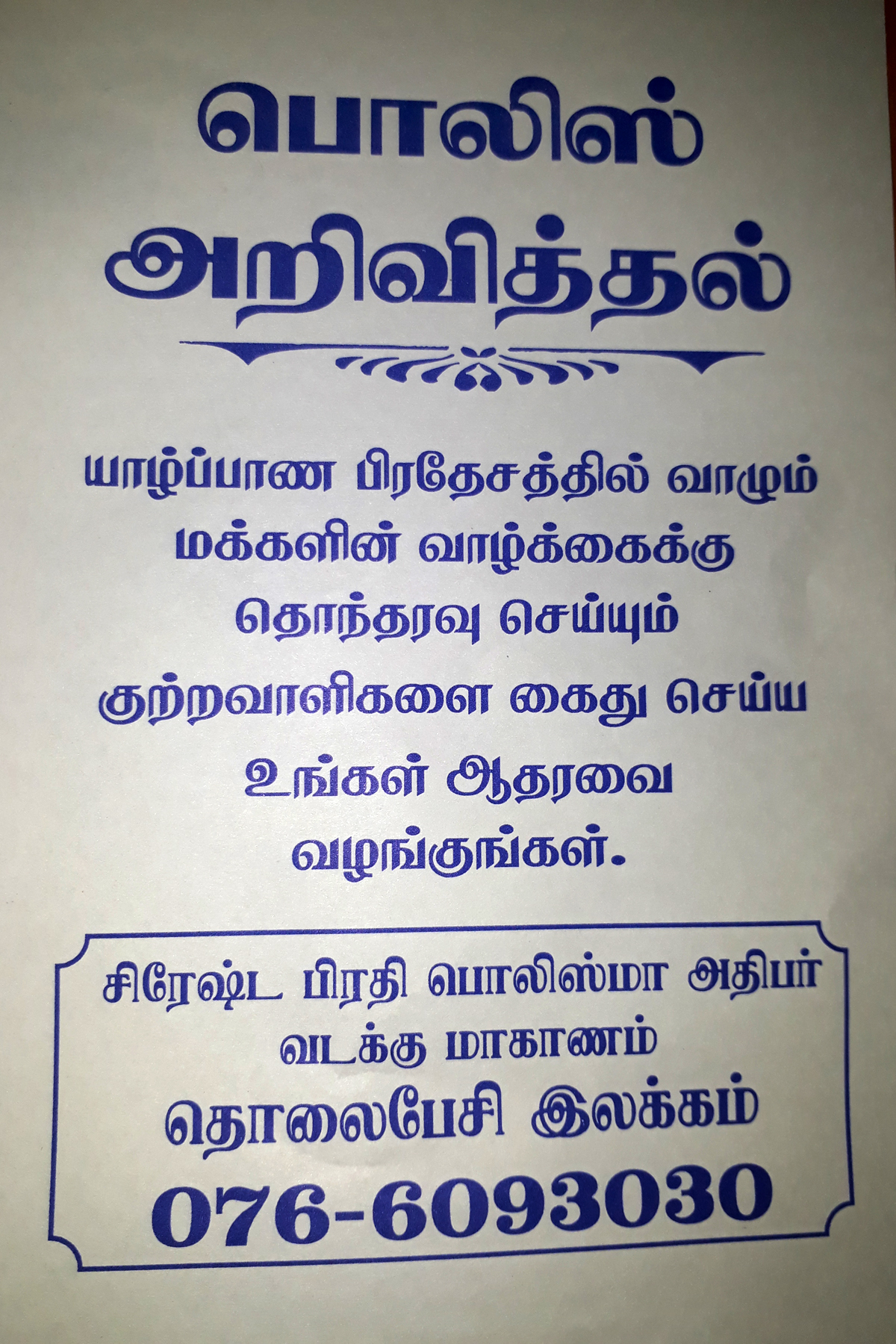 யாழ்ப்பாணத்தில் அண்மைக்காலமாக அதிகரித்துள்ள வாள்வெட்டு மற்றும் வன்முறைச் சம்பவங்களை கட்டுப்படுத்துவதற்கு மக்களின் உதவியை நாடி காவல் துறை வாகனப் பேரணியில் ஈடுபட்டுள்ளனர்.