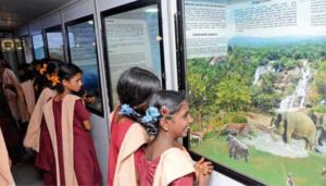 மாவட்டத்தில் சுற்றுப் பயணம் வந்த அரியவகை படங்கள் மற்றும் வரலாற்று பதிவுகளுடன் கூடிய அருங்காட்சியக ரதத்தை மாணவர்கள் பார்வையிட்டனர்.