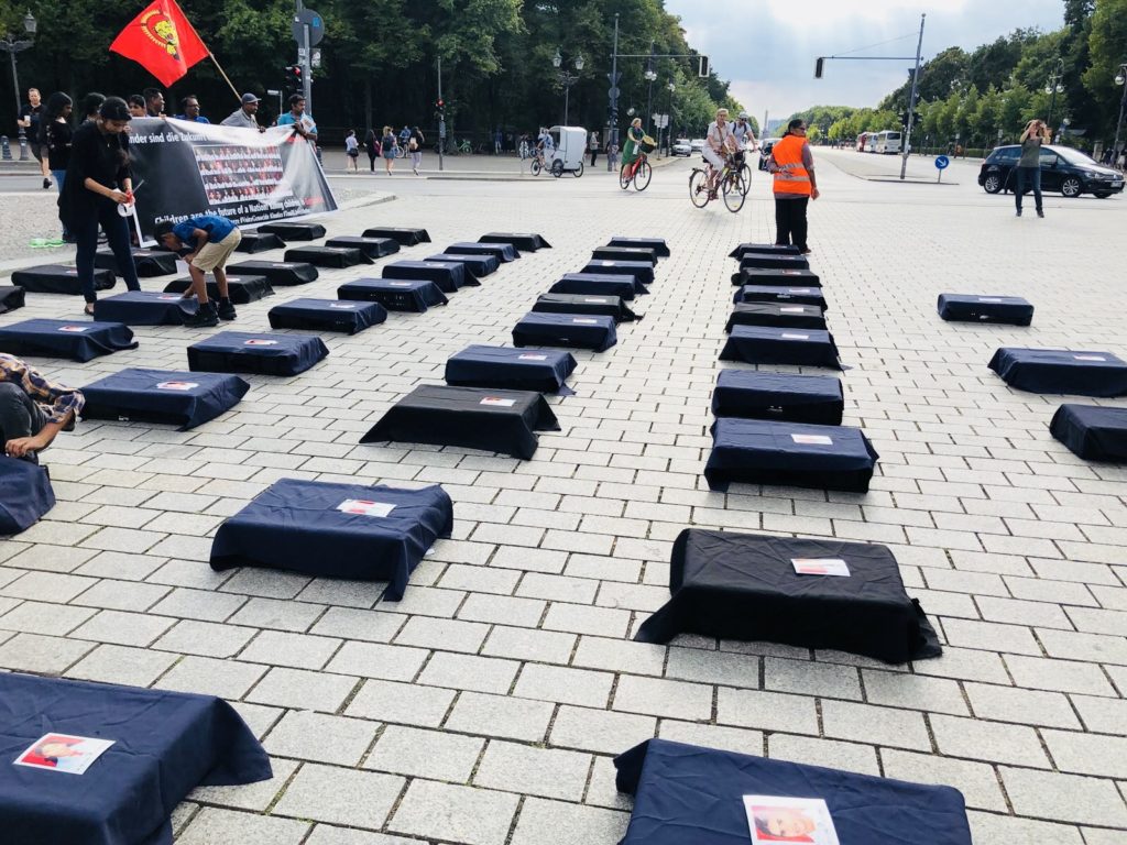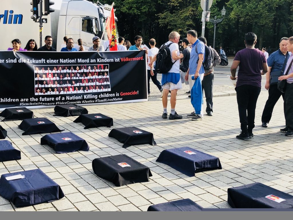 வன்னியில் வள்ளிபுனம் பகுதியில் அமைந்திருந்த செஞ்சோலை வளாகத்தில் இலங்கை அரசின் மிலேச்சத்தனமான குண்டு வீச்சினால் 53 சிறுவர்கள் உட்பட 62 பேர் படுகொலை செய்யப்பட்டார்கள். தமிழ் மக்களின் வரலாற்றில் மறக்கமுடியாத பதிவாகிவிட்ட படுகொலை . தமிழரின் நீண்ட சோக வரலாற்றில் `2006 ஆகஸ்ட் 14′ ஈனர் படைகளின் ஈவிரக்கமற்ற தாக்குதல்களால் பரிதாபகரமாகக் கொல்லப்பட்ட 62 உறவுகளின் குருதியால் எழுதப்பட்டுள்ளது.12 ஆண்டுகள் கடந்து சென்றாலும் இப்படுகொலைக்கு நீதி கோரும் முகமாக யேர்மனியின் தலைநகரத்தில் பாராளுமன்றத்துக்கு அருகாமையில் Brandenburger Tor க்கு முன்பாக பேர்லின் வாழ் உணர்வாளர்களால் கவனயீர்ப்பு நிகழ்வு முன்னெடுக்கப்பட்டது.