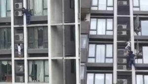 சீனாவில் 7-வது மாடியில் உயிருக்கு போராடிய மகனை காப்பாற்ற எந்தவித உபகரணமும் இன்றி களத்தில் இறங்கி செயல்பட்ட தந்தைக்கு பாராட்டுக்கள் குவிந்த வண்ணம் உள்ளன.