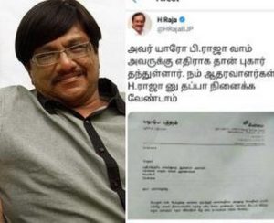 மனுஷ்யபுத்திரன் புகாரில் ஹெச்.ராஜா என்பதை பி.ராஜா என்று தவறாகக் குறிப்பிட்டதைச் சுட்டிக்காட்டி அது யாரோ ராஜாவாம் நாம் இல்ல சபையைக் கலையுங்கள் என்று ஹெச்.ராஜா கிண்டலடித்துள்ளார்.