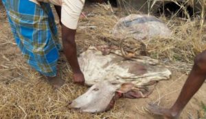 மாட்டுவண்டி சவாரி மாட்டினை வெட்டி இறைச்சியாக்கிய ஒருவர் கைதுசெய்யப்பட்டுள்ளதுடன், மற்றொருவர் தப்பி சென்றுள்ளதாக தர்மபுரம் பொரிஸார் தெரிவிக்கின்றனர்.