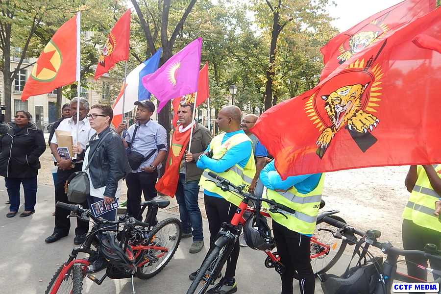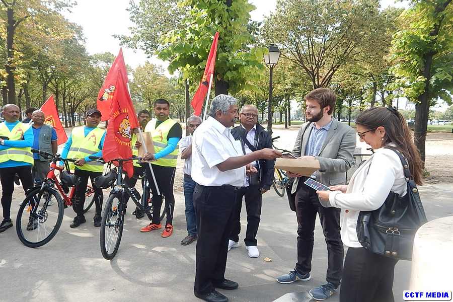 பின்னர் 11.00 மணிக்கு பிரெஞ்சு நாடாளுமன்றம் முன்பாக நாடாளுமன்ற உறுப்பினர்கள், மற்றும் ஏனைய நாட்டு விடுதலை அமைப்புகளின் முக்கியஸ்தர்கள் முன்னிலையில் பிரெஞ்சு நாட்டு அதிபருக்கான மனு கையளிக்கப்பட்டது. சிறப்புரைகளைத் தொடர்ந்து, ஈருருளிப் பேரணி உணர்வெழுச்சியுடன் ஆரம்பமானது.