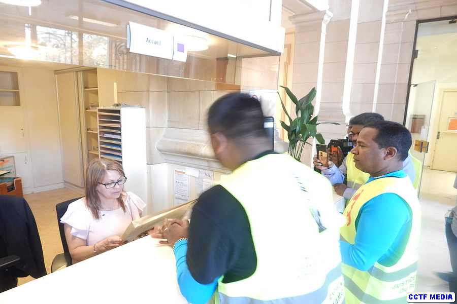 தொடர்ந்து ஈருருளிப்பயணம் பிற்பகல் 15.30 மணிக்கு Choisy-le-Roi நகர மண்டபத்தை அடைந்து அங்கு ஈருருளிப்பயண உணர்வாளர்களினால் போராட்டத்தின் கோரிக்கைகள் அடங்கிய மனு கையளிக்கப்பட்டதுடன் எமது போராட்டம் பற்றி ஈருருளிப்பயணம் மேற்கொள்ளும் உணர்வாளர்களால் நகரமண்டப உறுப்பினர்களுக்கு விளக்கமளிக்கப்பட்டது.
