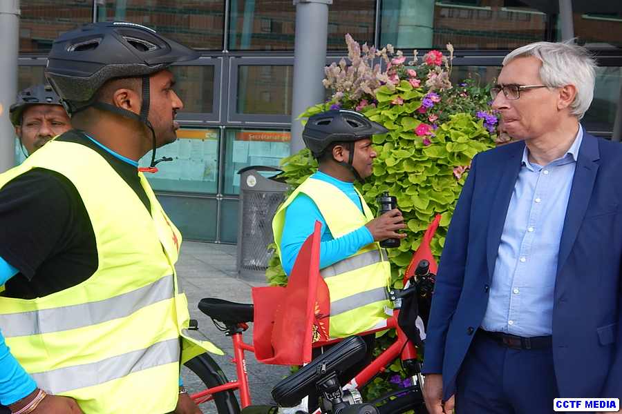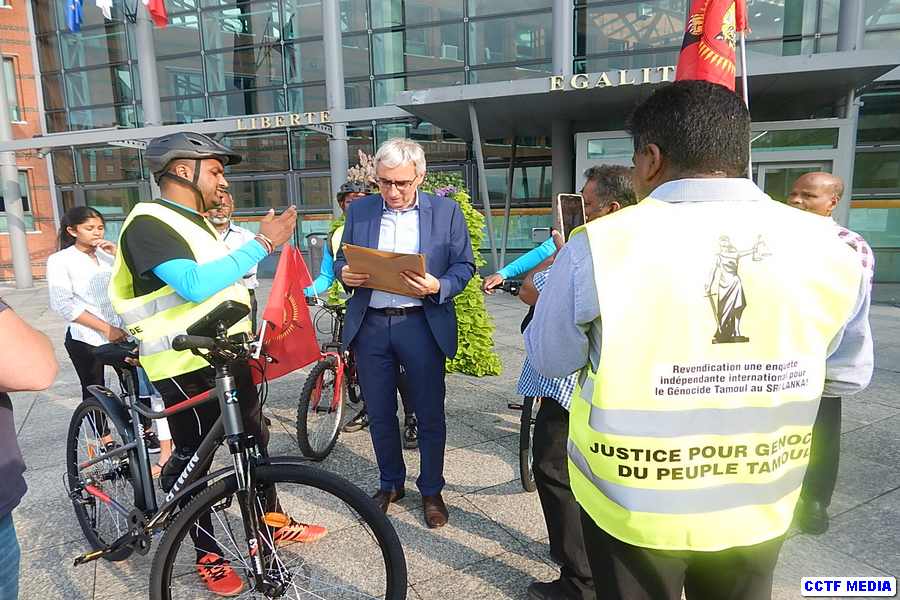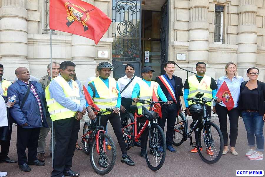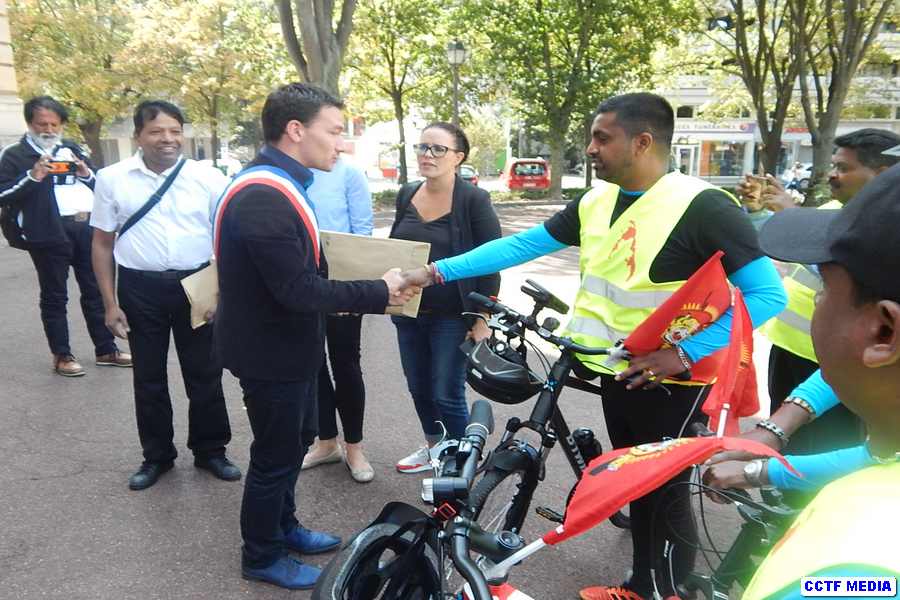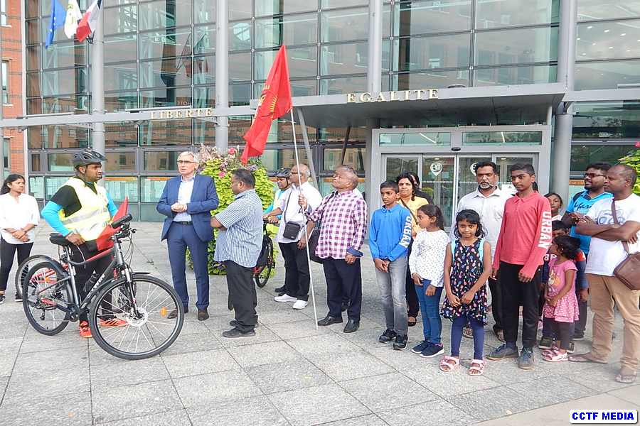 ஒவ்வொரு நகர மண்டபத்திலும் ஈருருளிப்பயணத்தை வரவேற்ற நகரமண்டப துணைநகர பிதா மற்றும் உறுப்பினர்கள் எமது போராட்டத்தின் நோக்கத்தை கேட்டறிந்து, உணர்வோடு வாழ்த்தி வழியனுப்பிவைத்த காட்சி அனைவரையும் மெய்சிலிர்க்கவைத்திருந்தமை குறிப்பிடத்தக்கது. தொடர்ந்து நாளை 04.09.2018 செவ்வாய்க்கிழமை காலை 9.00 மணிக்கு தொடரவுள்ள ஈருருளிப்பயணம் Savigny le temple நகரமண்டபம் உள்ளிட்ட முக்கிய நகரங்களுக்கூடாகப் பயணிக்கவுள்ளது. அப்பகுதிகளில் வாழும் மக்கள் ஈருருளி பயண உணர்வாளர்கள் தங்கள் இடங்களுக்கு வரும்போது அதிக அளவில் திரண்டு வந்து அவர்களின் பயணத்திற்கு வலுச்சேர்க்குமாறு உணர்வாளர்கள் கேட்டுள்ளனர்.