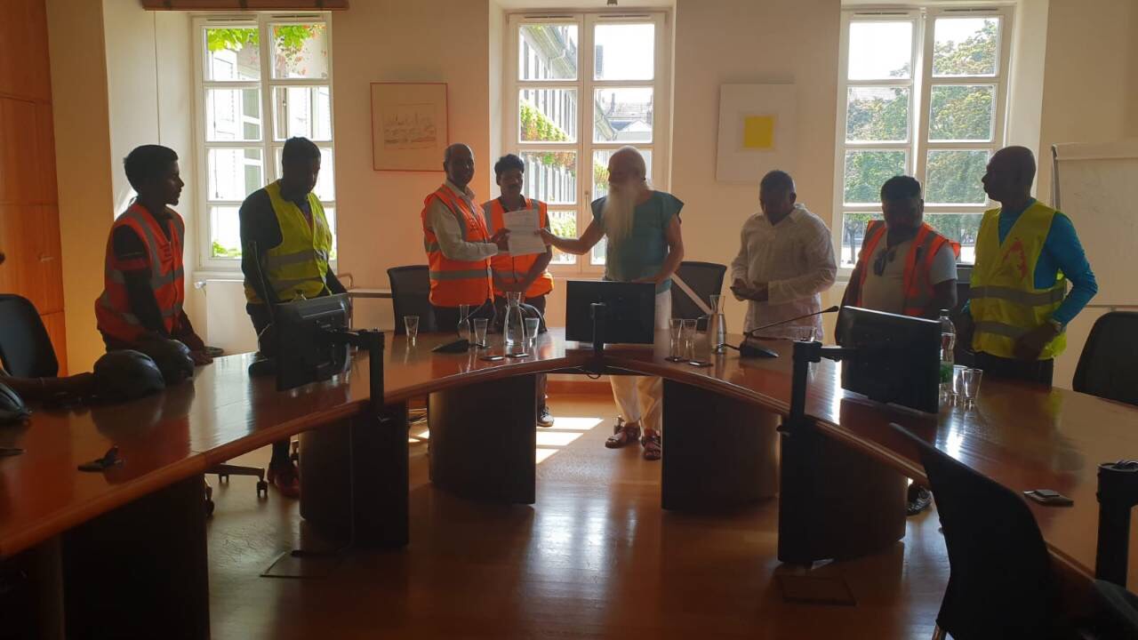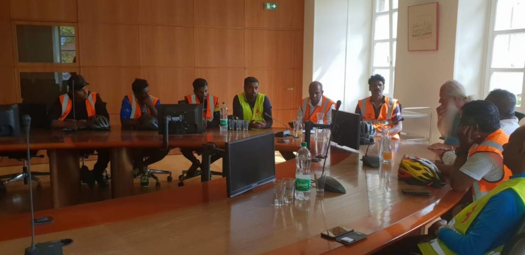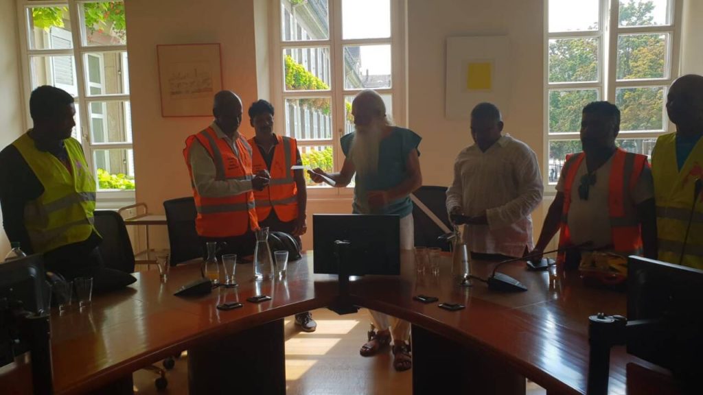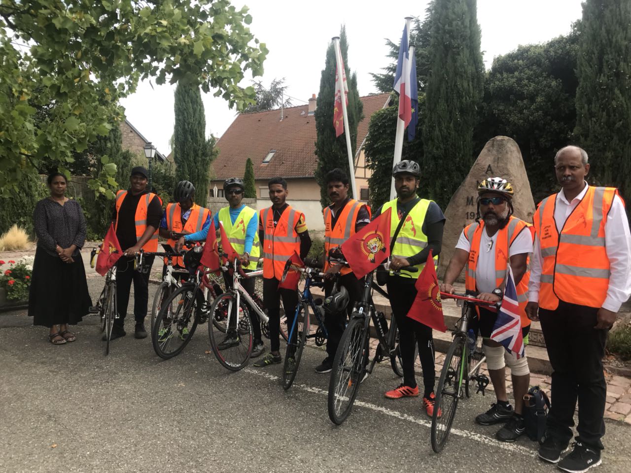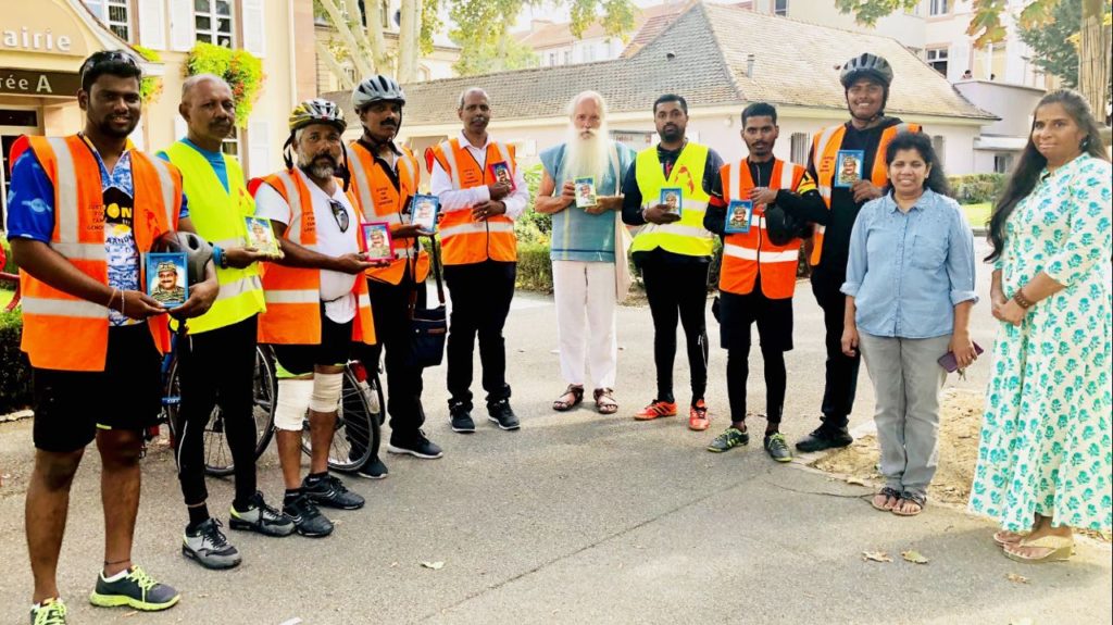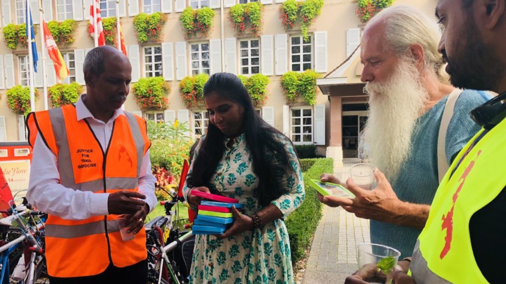 தமிழின அழிப்பிற்கு நீதி கோரி ஐநா நோக்கி பயணிக்கும் மனிதநேய ஈருருளிப்பயணம் நேற்றைய தினம் (13.09.2018) காலை அகவணக்கத்தோடு ஆரம்பித்து Mulhouse மாநாகரசபையினை வந்தடைந்தது . தொடர்ந்து மாநகர சபை உறுப்பினரிடம் மனு கையளிக்கப்பட்டு, Mulhouse மக்கள் தேசியத்தலைவரின் நிழல்படம் கொடுத்தும் வரவேற்றனர்.