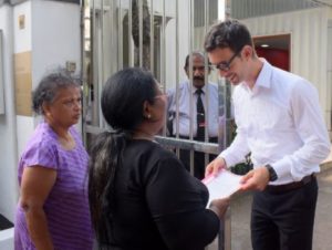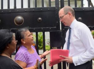அதனை தொடர்ந்து சுவிஸ் தூதரகத்திற்கு சென்ற குடும்ப ஒன்றியத்தினர் அங்கு, தூதுவரின் பிரிதிநிதியான டெமியானோவிடம் மனுவொன்றை கையளித்தனர்.அங்கு அவர்களுக்கு சுவிஸ் தூதரகத்தின் ஏற்பாட்டில் தேநீர் விருந்துபசாரமொன்று ஏற்பாடு செய்யப்பட்டிருந்தது. தேநீர் விருந்துபசாரத்தை தொடர்ந்து அவர்களின் பிரச்சினைகளை சுவிஸ் அதிகாரிகள் கேட்டறிந்தனர்.கடந்த 2008ஆம் ஆண்டு, கொழும்பில் 11 தமிழ் இளைஞர்கள் கடத்தப்பட்டு காணாமலாக்கப்பட்டனர்.