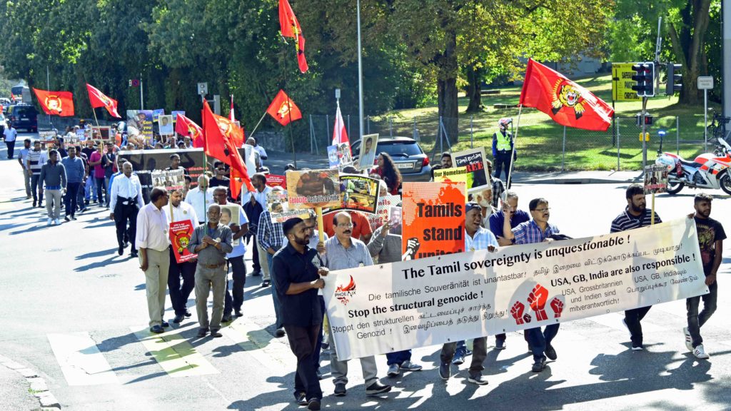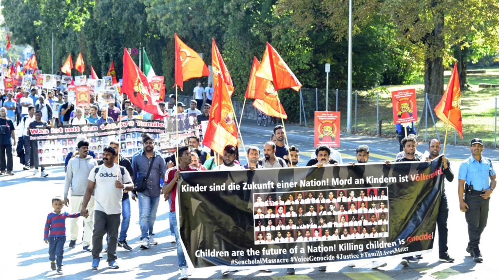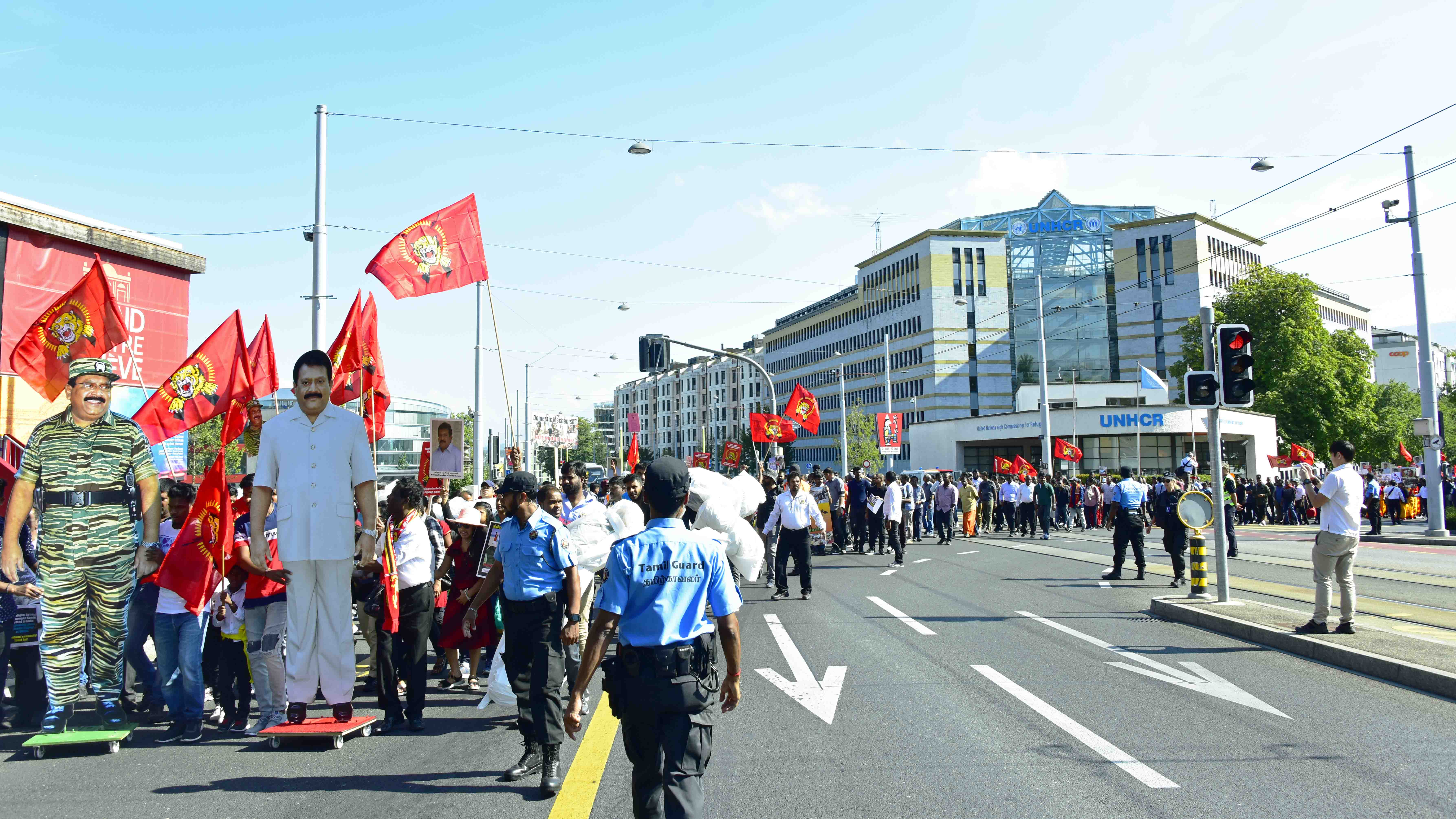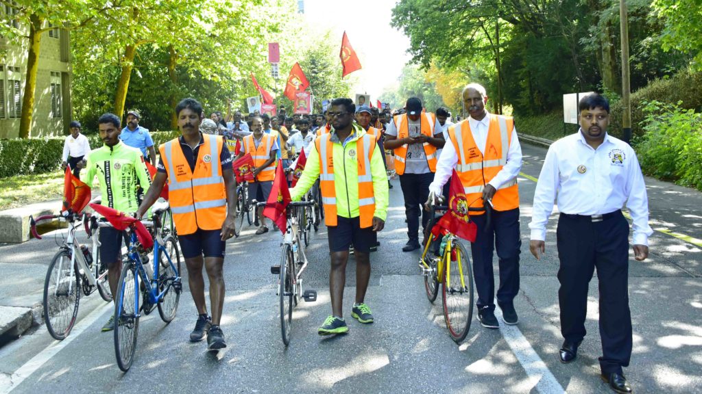 17.09.2018 திங்கட்கிழமை அன்று சுவிஸ் நாட்டின் ஜெனிவா தொடரூந்து நிலையத்திற்கு அருகாமையில் உள்ள பூங்காவில் ஆரம்பிக்கப்பட்ட பொங்குதமிழ் கவனயீர்ப்பு பேரணியானது உலகத்தமிழர்களின் ஒன்றுபட்ட உரிமைக்குரலாக ஒலிக்க, அவர்கள் தாங்கிய பதாகைகள் மூலம் வேற்றின மக்களுக்கு எடுத்துரைத்து, நகர்ந்து ஈகைப்பேரொளி முருகதாசன் திடலை வந்தடைந்தது.