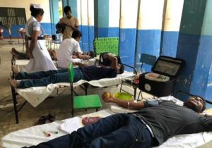 அதையடுத்து, அவர்களில் ஒருவர், தனது இடுப்புப் பகுதியில் இருந்த கைத்துப்பாக்கியை எடுத்து, தன்னுடன் வந்தவரிடம் கையளித்து விட்டு, தானும் இரத்த தானம் வழங்க முன்வந்தார்.