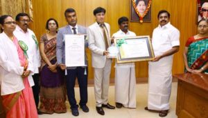 தமிழகத்தில் சிறந்த மருத்துவ சேவை, தூய்மை பராமரிப்புக்காக தேர்வு செய்யப்பட்ட 17 அரசு மருத்துவமனைகளுக்கு மத்திய அரசு ரூ.3 கோடி பரிசு வழங்கியது. அதை அதிகாரிகளிடம், முதல்-அமைச்சர் எடப்பாடி பழனிசாமி வழங்கினார்.