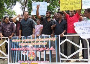 போன்ற வாசகங்ககளையுடைய சுலோகங்கள் தாங்கியவாறு கோசங்களையும் எழுப்பியவாறு அங்கிருந்து மணிக்கூட்டு கோபுரம் ஊடாக நகர தனியார் பஸ் தரிப்பிடம் வரையில் சென்று மீண்டும் காந்திப் பூங்கா வரை வந்து நிறைவடைந்தது. சுமார் 30 நிமிடம் கோஷங்கள் எழுப்பியவாறு ஆர்பாட்டத்தில் ஈடுபட்டுவிட்டு அங்கிருந்து கலைந்து சென்றனர்.