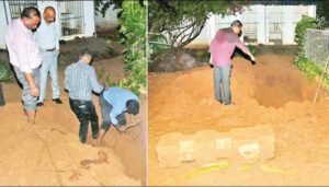 அங்கு 4 அடி ஆழத்தில் பள்ளம் தோண்டினார்கள். அங்கு 2 கலைநயமிக்க கல்தூண்கள் புதைக்கப்பட்டு இருப்பது கண்டுபிடிக்கப்பட்டது. அவற்றை போலீசார் வெளியே எடுத்தனர். அதில் ஒரு கல்தூண் சிலையோடு சேர்ந்து காணப்பட்டது. மேலும் அங்கு பூமிக்கடியில் ஏராளமான சிலைகளை புதைத்து வைத்திருக்கலாம் என்ற சந்தேகத்தின் பேரில் ஜே.சி.பி.எந்திரம் மூலம் தோண்டு பணியில் போலீசார் இன்று(சனிக் கிழமை) ஈடுபடுகிறார்கள்.
