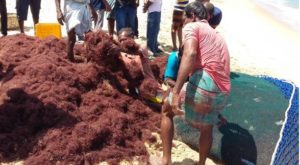 இந்நிலையில் கரையை அண்டி காணப்படும் ஒருவையான கடற்பாசி காரணமாக தங்களது தொழிலினை சரியாக மேற்கொள்ள முடியாத நிலை ஏற்பட்டிருப்பதாக குறித்த தொழிலாளர்கள் தெரிவித்துள்ளனர்.
