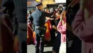 பணியை மறந்து, அவர்கள் ஆடும் அழகை ரசித்தார். அவர்களது ஆட்டத்தை கூர்ந்து கவனித்தபடி உற்சாகமாக ஆடி மகிழ்ந்தார் அந்த போலீஸ்காரர்.