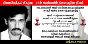 படுகொலை செய்யப்பட்ட ஊடகவியலாளர் மயில்வாகனம் நிமலராஜனின் 18வது ஆண்டு நினைவேந்தல் நிகழ்விற்கு யாழ்.ஊடக அமையம் அழைப்பு விடுத்துள்ளது. 2000ம் ஆண்டின் ஒக்டோபர் 19ம் திகதி இரவு யாழ்.குடாநாட்டின் முன்னணி ஊடகவியலாளர் நிமலராஜன் தனது வீட்டில் வைத்து சுட்டுப்படுகொலை செய்யப்பட்டிருந்தார்.