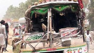 பாகிஸ்தான் நாட்டின் தேரா காஜி கான் நகரில் சென்று கொண்டிருந்த இரு பேருந்துகள் திடீரென மோதிக் கொண்டன. இந்த விபத்தில் சம்பவ இடத்திலேயே உடல் நசுங்கி 15 பேர் பரிதாபமாக இறந்தனர். மேலும் 40க்கு மேற்பட்டோர் படுகாயம் அடைந்தனர்.