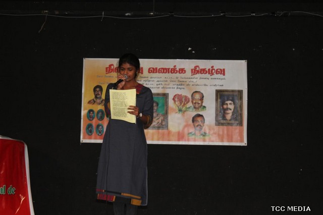 அரங்க நிகழ்வுகளாக தமிழ்சோலை மாணவர்களின் நடனமும், விடுதலை கீதமும், கவிதையும் இடம்பெற்றது.