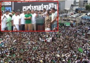 ஐக்கியதேசிய கட்சி தலைவர்கள் உரையாற்றிய மேடையில் மேர்வின் சிவ்லா காணப்பட்டார்