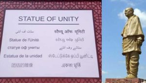 உலகின் மிக உயரமாக உருவாக்கப்பட்ட வல்லபாய் படேலின் சிலையில், தமிழ் மொழிப்பெயர்ப்பு மிக மோசமான முறையில் செய்யப்பட்டு இருப்பது அதிர்ச்சியை ஏற்படுத்தியுள்ளது.