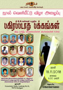 எனது நீண்ட நாள் கனவு, ஆசை நிறைவேறும் தருணம் வந்துள்ளது. வருகின்ற 18 ஆம் திகதி எமக்காக தம்முயிர் ஈந்த மாவீரர்களின் தியாகம் நிறைந்த வரலாறுகளை அடுத்த தலைமுறைக்கு கொடுக்கும் பெரும் பணியாக இதை செய்திருக்கிறேன். “பகிரப்படாதபக்கங்கள் “ என்ற இப்புத்தகம் யேர்மனியின் ஸ்ருட்காட் நகரில் வெளியிடப்பட இருக்கிறது. இப்புத்தக வெளியீட்டில் அனைவரும் பங்கெடுத்து எனது இம் முயற்சிக்கு பலம் சேர்க்க வேண்டும் என்று உங்களை அன்புரிமையோடு வேண்டுகிறேன். எமக்காக தம்மை தியாகித்த வேங்கைகளை மனம் நிறுத்தி இப்புத்தக வெளியீட்டுக்கு கட்டாயம் வருகை தாருங்கள். வெளியில் சொல்லப்படாத பல கதைகள் இதன் ஒவ்வொரு பக்கத்திலும் பதிவாகி இருக்கிறது. இது நிச்சயமாக உங்களுக்கு புது வரலாறுகளை கூறும் என்று நம்புகிறேன்.
