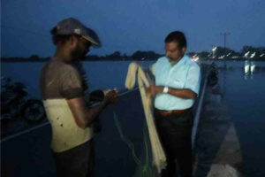 யாழ்ப்பாணத்தில் இருந்து சென்ற அவர் முதலில் முள்ளிவாய்க்கால் ஊடாக வட்டுவாகல் பாலத்திற்கு சென்று அங்கு வீச்சு வலைஊடாக மீன்பிடிக்கும் தொழில் நடவடிக்கையில் ஈடுபட்ட மீனவர்களை பார்த்துள்ளதுடன் வீச்சு வலையினை வாங்கி தானும் வீசியுள்ளார்.