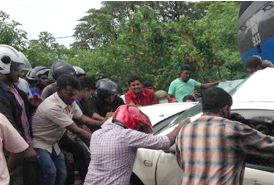 காங்கேசன்துறையில் இருந்து யாழ்ப்பாணம் நோக்கிப் பயணித்த கடுகதித் ரயிலுடன், கார் ஒன்று மோதி விபத்துக்குள்ளாகியது.