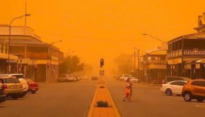 ஆஸ்திரேலியாவில் நாட்டின் தென் கிழக்கு பகுதி முழுமைக்கும் நேற்று கடுமையான புழுதிப்புயல் வீசியது. இதன் காரணமாக வானம் ஆரஞ்சு நிறமாக (செம்மஞ்சள் நிறமாக) மாறியது.