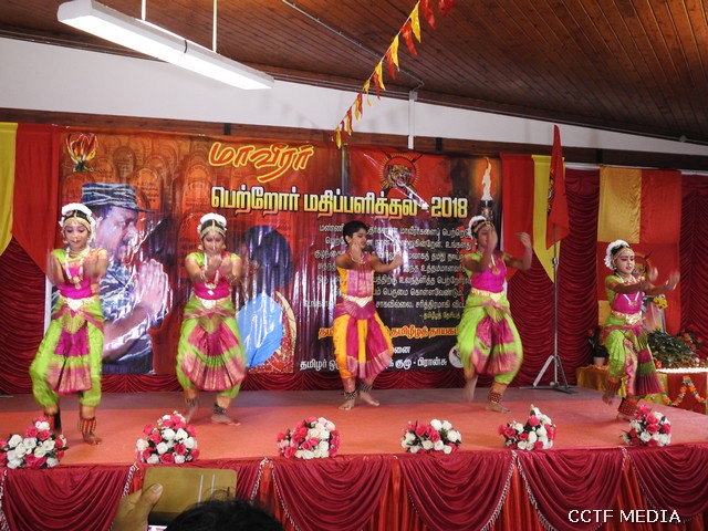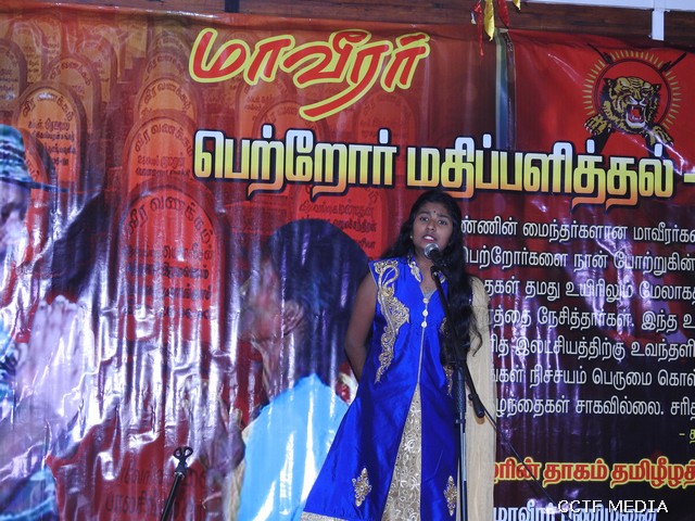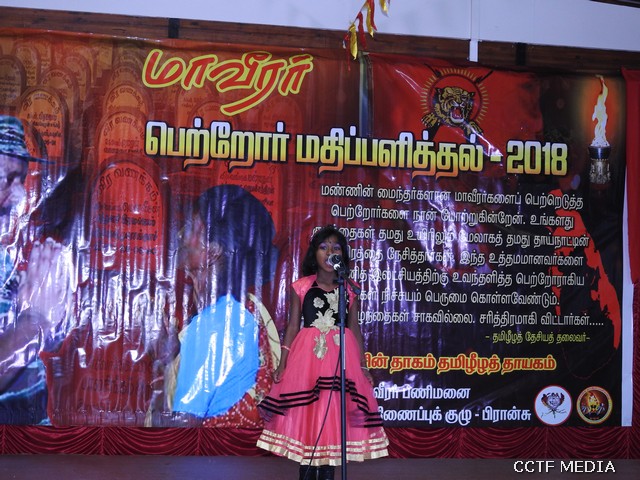 தொடர்ந்து அரங்க நிகழ்வுகள் ஆரம்பமாகின. அரங்க நிகழ்வுகளாக தமிழ்ச்சோலை மாணவர்களின் எழுச்சி நடனங்கள், மாவீரர் கலைத்திறன்போட்டிகளில் வெற்றிபெற்ற மாணவ, மாணவிகளின் பேச்சு, தனிநடிப்பு, பாட்டு, கவிதை என்பன இடம்பெற்றன.