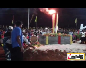 யாழ்ப்பாணம் கோப்பாய் மாவீரர் துயிலுமில்லத்திற்கு முன்பாக, மாவீரர் தினத்தை முன்னிட்டு, சுடர் ஏற்றப்பட்டு அஞ்சலி செலுத்தப்பட்டுள்ளது. …………..