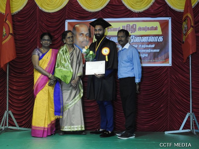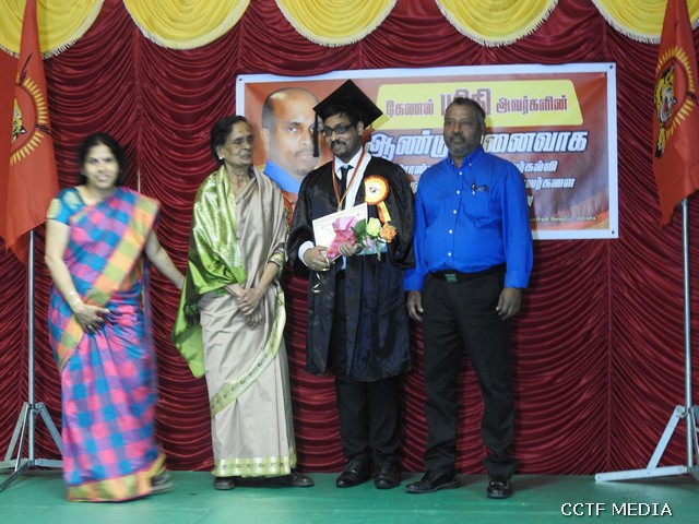 உணர்வுபூர்வமாக இடம்பெற்ற இந்நிகழ்வில் பிரான்சு மண்ணில் உயர்கல்வியை முடித்து பல்வேறு துறைகளிலும் பட்டம்பெற்ற 13 தமிழ் மாணவ மாணவியர் மதிப்பளிப்புச் செய்யப்பட்டிருந்தனர். இவர்களுக்கான மதிப்பளித்தலை கேணல் பருதி அவர்களின் தாயார் வழங்கியிருந்தார்.