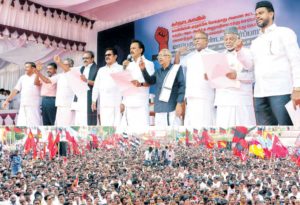 திராவிடர் கழக தலைவர் கி.வீரமணி, தமிழ்நாடு காங்கிரஸ் தலைவர் திருநாவுக்கரசர், ம.தி.மு.க. பொதுச்செயலாளர் வைகோ, மார்க்சிஸ்ட் கம்யூனிஸ்டு கட்சியின் மாநில செயலாளர் கே.பாலகிருஷ்ணன், இந்திய கம்யூனிஸ்டு கட்சியின் மாநில செயலாளர் இரா.முத்தரசன், இந்திய யூனியன் முஸ்லிம் லீக் கட்சியின் தேசிய தலைவர் காதர்மொய்தீன், விடுதலை சிறுத்தைகள் கட்சி தலைவர் தொல்.திருமாவளவன், மனிதநேய மக்கள் கட்சியின் பொதுச்செயலாளர் அப்துல் சமத் உள்பட பலர் கலந்து கொண்டனர்.