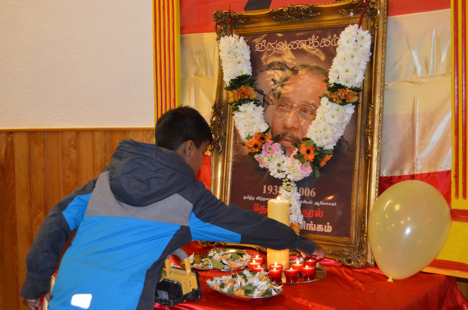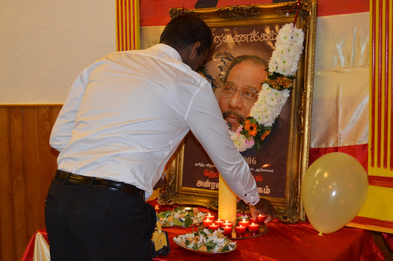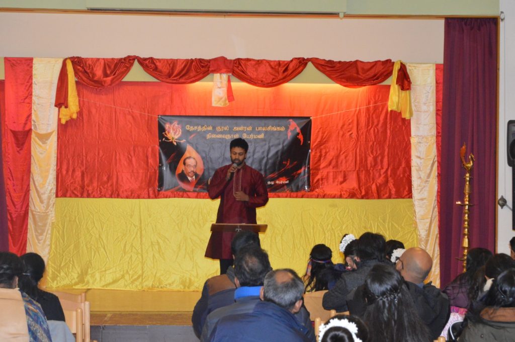 தமிழீழத் தேசியக்கொடி ஏற்றிவைக்கப்பட்டு ஆரம்பிக்கப்பட்ட இந் நிகழ்வில் தேசத்தின் குரல் அன்ரன் பாலசிங்கம் அவர்களின் திருவுருவப்படத்திற்கு மலர்மாலை அணிவித்து சுடர் வணக்கத்தினை வருகை தந்திருந்த மக்கள் வரிசையாக வந்து உணர்வு பூர்வமாகச் செலுத்தினர்.