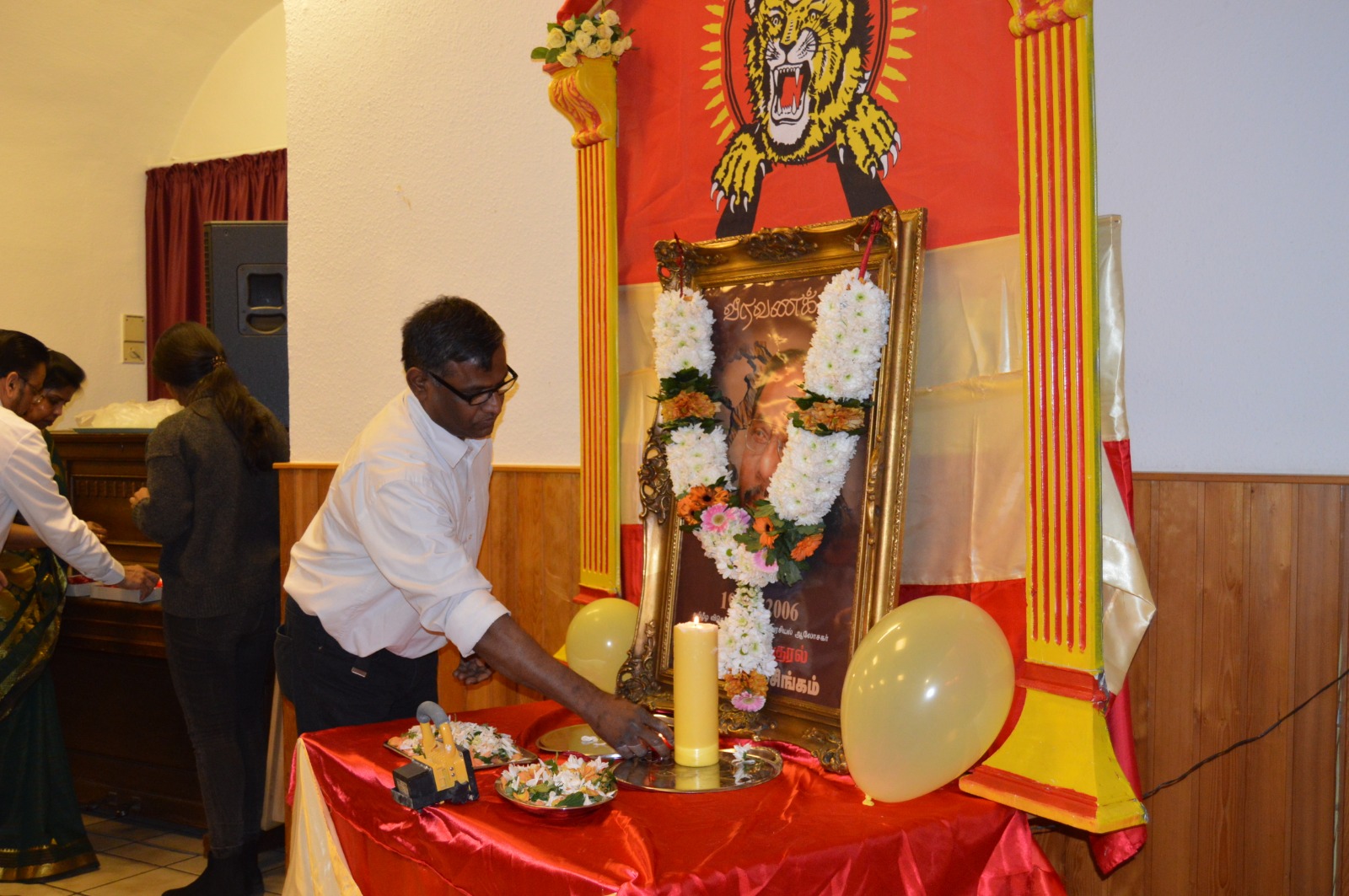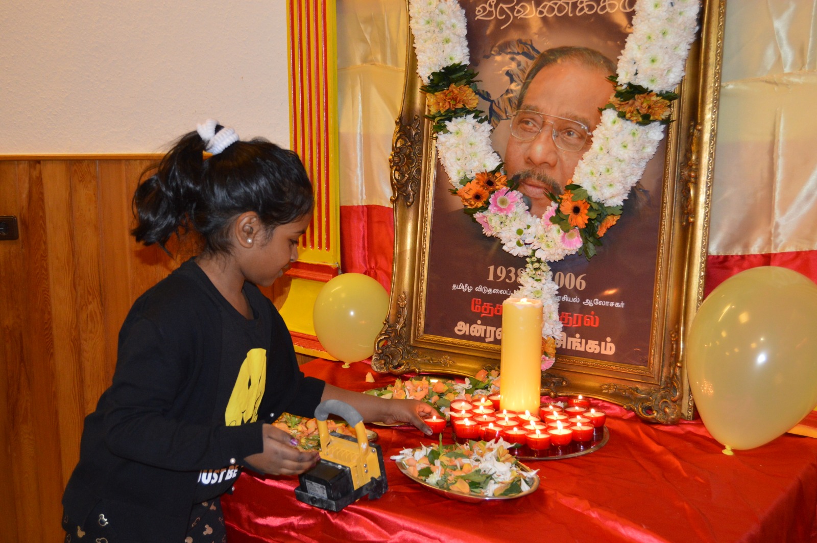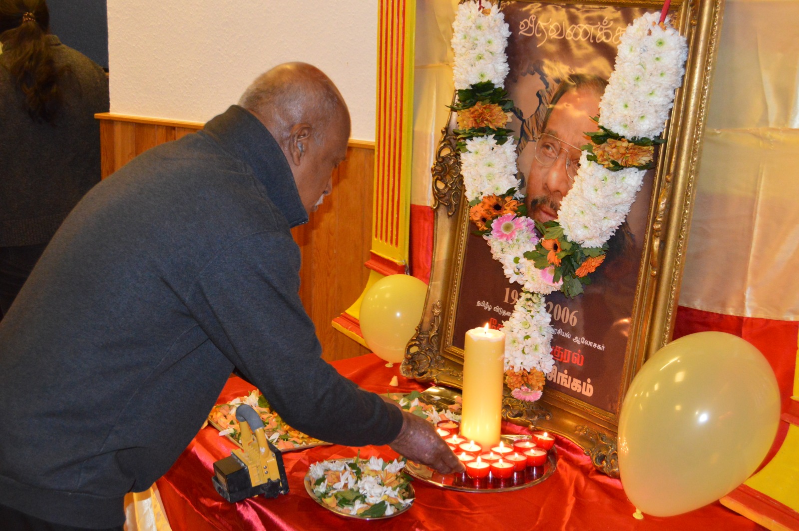 தமிழீழத் தேசியக்கொடி ஏற்றிவைக்கப்பட்டு ஆரம்பிக்கப்பட்ட இந் நிகழ்வில் தேசத்தின் குரல் அன்ரன் பாலசிங்கம் அவர்களின் திருவுருவப்படத்திற்கு மலர்மாலை அணிவித்து சுடர் வணக்கத்தினை வருகை தந்திருந்த மக்கள் வரிசையாக வந்து உணர்வு பூர்வமாகச் செலுத்தினர்.