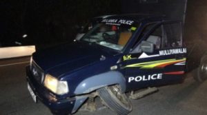 யாழ்பாணத்திலிருந்து பரந்தன் நோக்கி பயணித்துக் கொண்டிருந்த முள்ளியவளை பொலிஸ் நிலையத்திற்கு சொந்தமான ராட்டா ரக பிக்கப் ஒன்று வீதியை கடக்க முயன்ற ஒருவரை மோதியதிலையே இவ் விபத்து இடம்பெற்றுள்ளாடு அருகில் இருந்த பாலத்தில் வாகனம் மோதியதில் வாகனமும் சேதத்திற்குள்ளாகியுள்ளது