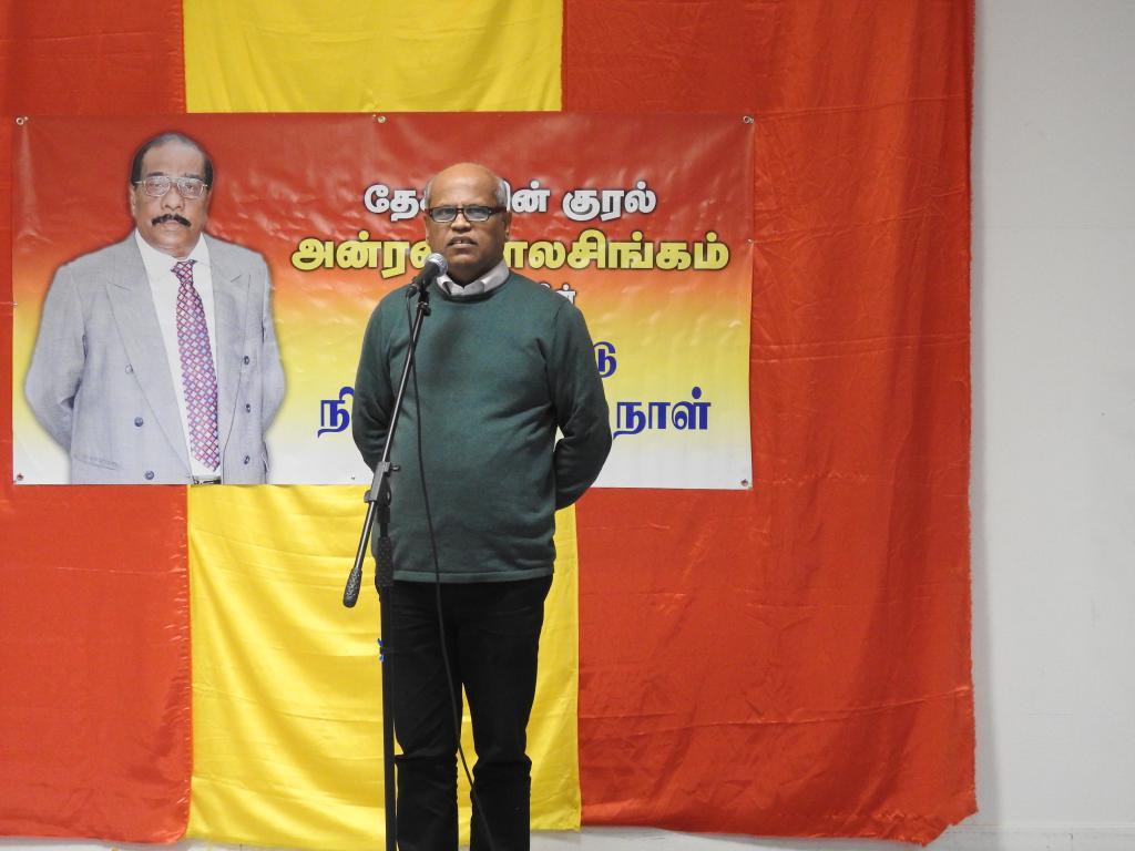 சிறப்புரையினை பிரான்சு தமிழர் ஒருங்கிணைப்புக் குழுவின் நிர்வாகப் பொறுப்பாளர் திரு ப. பாலசுந்தரம் அவர்கள் ஆற்றியிருந்தார். அவர் தனது உரையில்,
