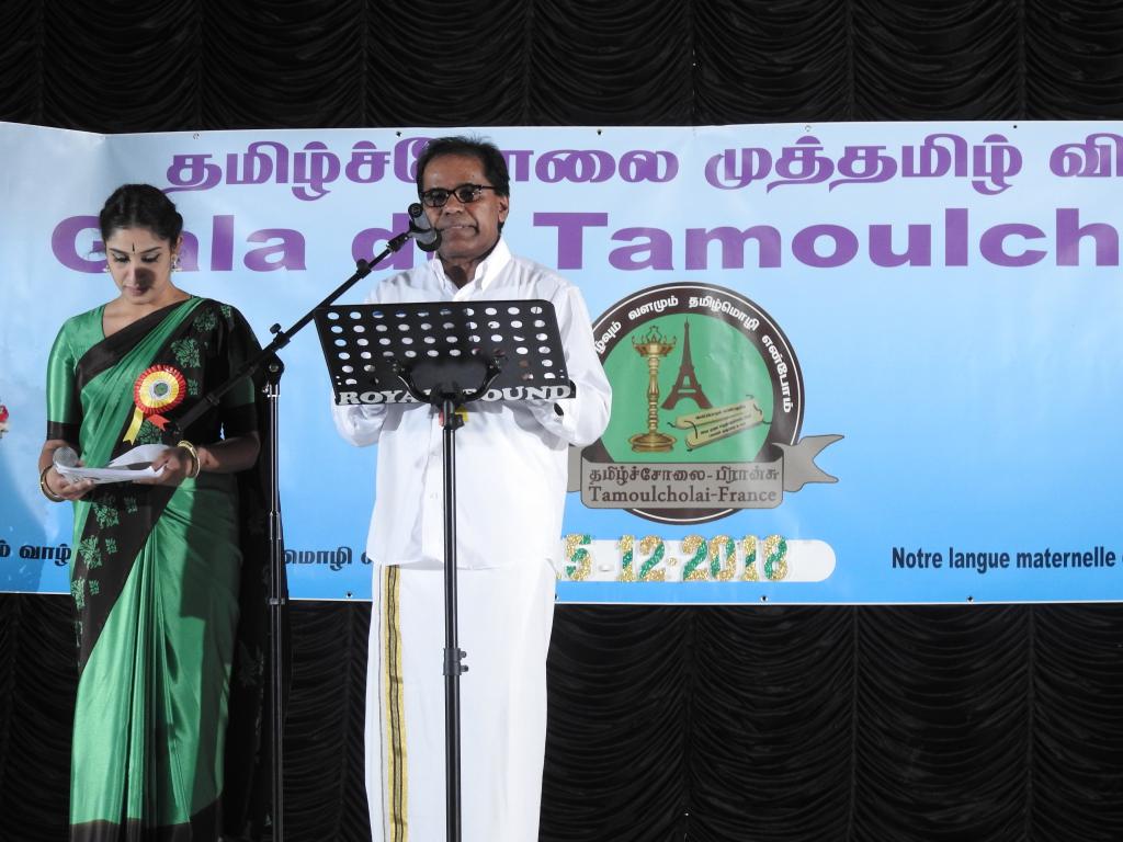 முதன்மைவிருந்தினர் உரையை பேராசிரியர் வழங்கியிருந்தார். அவரும் தனது உரையில் இங்கு நடைபெற்ற நிகழ்வுகளை கண்ணுற்றதையும், அதில் ஆசிரியர்கள், மாணவர்கள் வழங்கிய தத்துருபமான நிகழ்வுகள் தன்னை மெய்சிலிர்க்க வைத்தது என்றும், எமது பாரம்பரியம் அழிந்து விடாது இனியம் என்ற எமது இசைஅசைவு நடனம் இங்கு தன்னால் ஆரம்பித்து வைக்கப்பட்டு 10 வது ஆண்டு என்றும் அதை கைவிட்டு விடாது தொடர்ந்து அடுத்தடுத்த தலைமுறைக்கு எடுத்துச் செல்லும் ஒரு நாடு பிரான்சு நாடுதான் அதுவும் தமிழச்சோலை பணியகம் மாத்திரமே என்று தனது பாராட்டுதல்களை ஆசிரியர்களுக்கும், மாணவர்களுக்கும் தெரிவித்துக் கொண்டார். மேலும் அழியவிடாது பாதுகாக்க வேண்டிய எமது வரலாற்றை ஓர் வீடியோ ஆவணமாக பல பகுதிகளாக தமிழில் தயாரிக்க வேண்டும் என்றும், அதனை முக்கியமா ஆங்கிலம், பிரெஞ்சு மொழிகளிலும், மொழிமாற்றம் செய்தால் அதிகமாக எமது அடுத்த தலைமுறை அவற்றை அறிந்து கொள்ள வழியேற்படும் என்றும் அதனை தான் முதலில் பிரெஞ்சு வாழ் தமிழ்மக்களின் உதவியோடு செய்ய விரும்புவதாகவும் குறிப்பிட்டிருந்தார்.