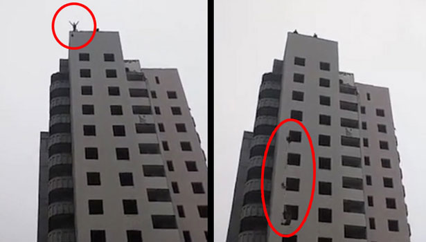 சிறுவனின் சாகசத்தை பார்க்க அவனது தாய், உறவினர்கள் மற்றும் அக்கம்பக்கத்தினர் அங்கு குவிந்தனர். அவர்கள் அனைவரும் சிறுவனை உற்சாகப்படுத்தியதோடு, பலர் அங்கு நடப்பதை தங்கள் செல்போனில் படம் பிடித்தனர். இதனால் உற்சாகம் அடைந்த அந்த சிறுவன் தனது இரு கைகளையும் உயர்த்தி காட்டியபடி, மாடியில் இருந்து கீழே குதித்தான்.