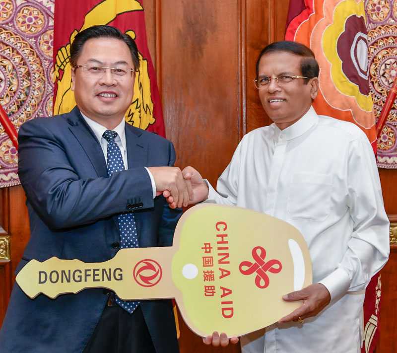 சீனாவுக்கும் இலங்கைக்கும் இடையே நீண்ட காலமாக இருந்துவரும் நட்புறவை மேலும் பலப்படுத்தும் நோக்கில், சீன உதவி நிகழ்ச்சித் திட்டத்தின் கீழ் இலங்கைக்கு அன்பளிப்பு செய்யப்பட்ட 90 தண்ணீர் பௌசர்களை உத்தியோகபூர்வமாக ஜனாதிபதி மைத்திரிபால சிறிசேனவிடம் கையளிக்கும் நிகழ்வு இன்று (19) முற்பகல் ஜனாதிபதி அலுவலகத்தில் இடம்பெற்றது.
