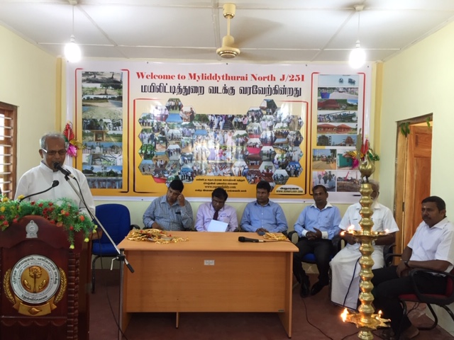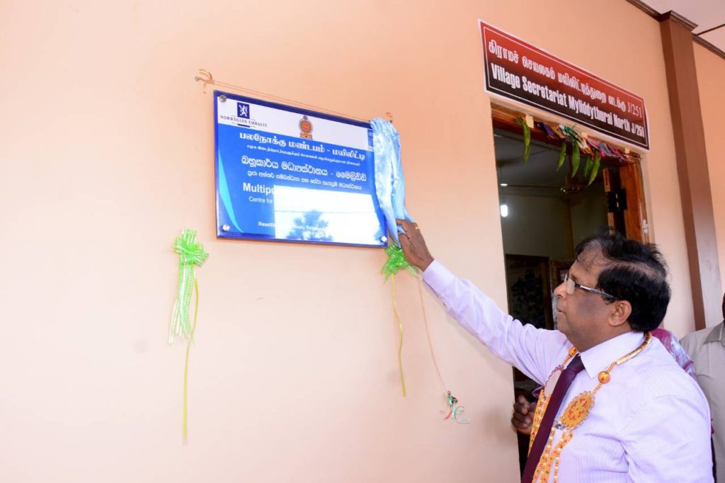 நோர்வே அரசின் அனுசரணையுடன் யு.என்.டி.பி. நிறுவனத்தின் நிதி பங்களிப்புடன் கட்டியெழுப்பப்பட்டிருக்கும் பலநோக்கு மண்டபத் திறப்புவிழாவும் மண்டப கையளிப்பு நிகழ்வும் இன்று வியாழன் காலை 8.30 மணிக்கு ஆரம்பமாகி நடைபெற்றுள்ளது. பிரதம விருந்தினராக வருகைதந்து பலநோக்கு மண்டபத்திற்கான பெயர் பலகையை திரை நீக்கம் செய்து வைத்ததுடன் மயிலிட்டி வடக்கு J/251 கிராமிய அபிவிருத்தி அமைப்பிடம் உத்தியோகபூர்வமாக கையளித்திருந்தார் மாவட்ட அரசாங்க அதிபர் அவர்கள்.