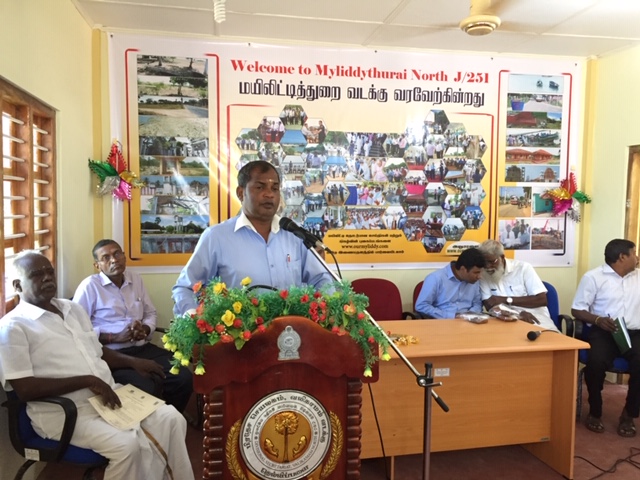 வீடுகள் இருந்த அடையாளமே தெரியாதவாறு முற்றிலும் அழிவடைந்த நிலையிலேயே மயிலிட்டி பகுதி விடுவிக்கப்பட்டுள்ளது. ஆகவே இக்கிராமத்தை புதிதாகவே உருவாக்க வேண்டிய தேவையுள்ளது. இடப்பெயர்விற்கு முன்னதாக நீங்கள் எவ்வாறு இருந்தீர்களோ அந்நிலைக்கு உங்களை கொண்டுவருவதற்கு உரிய நடவடிக்கைகளை மேற்கொள்வதாக பிரதம விருந்தினர் உரையில் அவர் மேலும் தெரிவித்திருந்தார்.