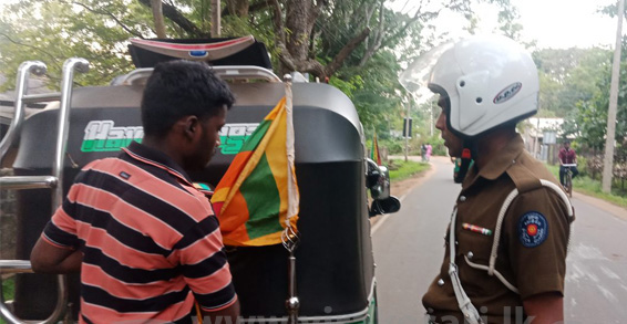 முச்சக்கரவண்டியின் பின்புறமாக நாகரிகமான முறையில் காணப்பட்ட இலங்கையின் தேசியக்கொடியினை சீரான முறையில் வைக்குமாறு பொலிஸார் விடுத்த வேண்டுகோளுக்கிணங்க முச்சக்கரவண்டியில் பயணித்த இளைஞர் தேசியக்கொடியினை சீரான முறையில் மாற்றினார்கள்.
