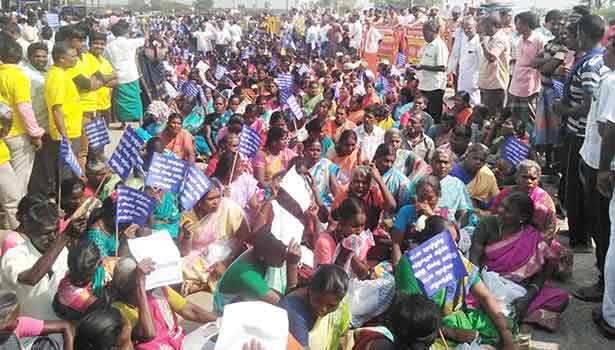 போராட்டம் காரணமாக திருநெல்வேலி, தூத்துக்குடியில் இருந்து வரும் வாகனங்கள் எட்டயபுரம் 4 வழிச்சாலைக்கு திருப்பி விடப்பட்டது.