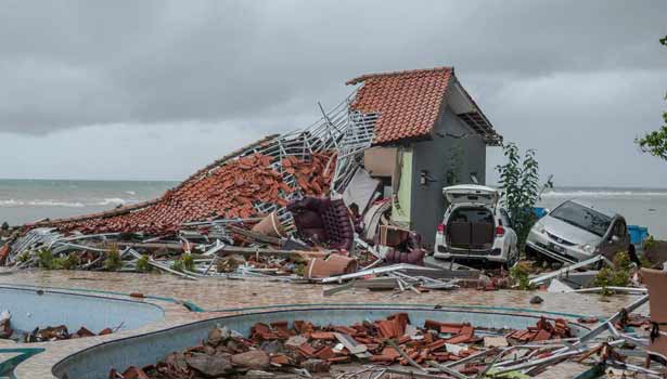 இந்தோனேசியாவின் மேற்கு ஜாவா தீவில் உள்ள அனாக் கிரகடாவ் என்ற எரிமலை கடந்த 22-ம் தேதி இரவு வெடித்து சிதறியது. எரிமலையில் இருந்து கரும்புகையும், நெருப்புக் குழம்பும் வெளியானது. இதனால், அப்பகுதி முழுவதும் அதிர்ந்து குலுங்கியதால் சுட்டெரிக்கும் வெப்பமும் வெளியேறியது. பின்னர் சிறிது நேரத்தில் சுந்தா ஜலசந்தி பகுதியில் இருந்து எழுந்த ராட்சத சுனாமி அலைகள் தெற்கு சுமத்ரா மற்றும் மேற்கு ஜாவா தீவுகளை கடுமையாக தாக்கின. சுமார் 65 அடி உயரத்தில் சீறிப்பாய்ந்த சுனாமி அலைகள் நூற்றுக்கணக்கான வீடுகள், கட்டிடங்களை அழித்து தரைமட்டமாக்கின.